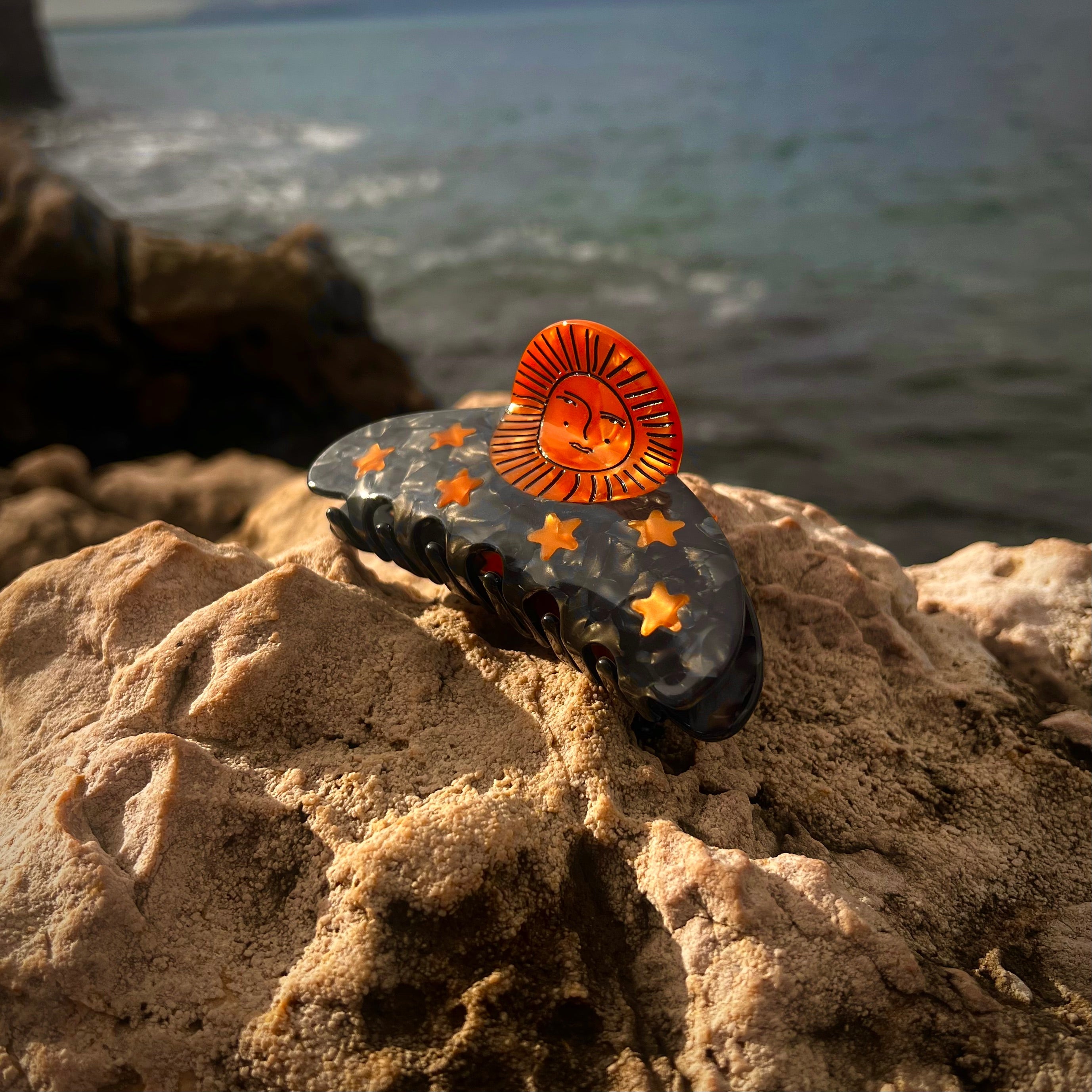 🌞 Découvrez la pince à cheveux Soleya ✨, un véritable rayon de lumière pour sublimer vos coiffures avec une élégance solaire et un soupçon de magie céleste. Inspirée par le charme mystique du soleil et des étoiles, cette création unique incarne la beauté et l’éclat qui illuminent vos journées. 🌟💫